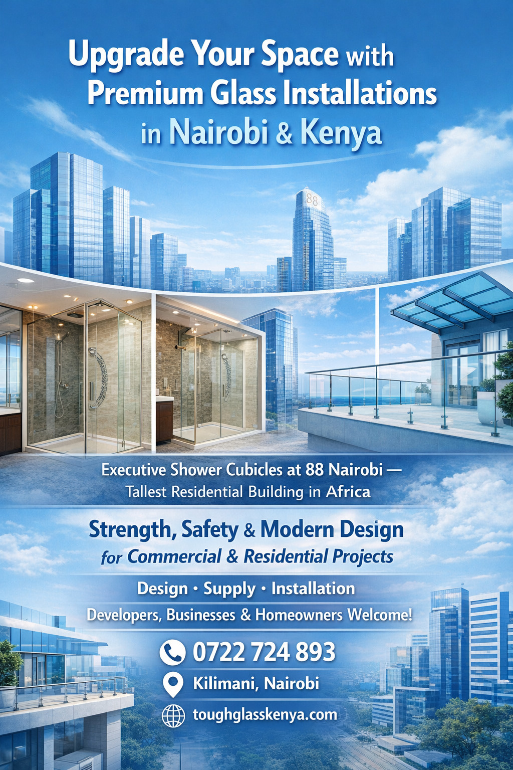 Tough Glass Kenya stands out because it offers whole-project support — from design consultation through fabrication, installation, and post-installation maintenance. This end-to-end approach ensures every installation aligns with international safety standards, local building codes, and the specific expectations of leading construction partners.
